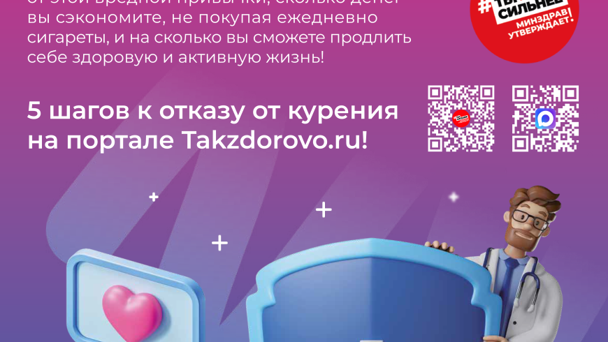 Министерство здравоохранения Российской Федерации в целях усиления информационной работы по повышению грамотности населения в вопросах здоровья, профилактики заболеваний и формирования здорового образа жизни направило обновлённые рекламно-информационные материалы. Мера реализуется во исполнение указания Министра здравоохранения РФ М. А. Мурашко. Материалы разработаны для официального интернет-портала Минздрава России о здоровом образе жизни Takzdorovo.ru. Их ключевой особенностью стало наличие QR-кода, при сканировании которого пользователь попадает на официальный канал Минздрава России в социальной сети «МАХ». Использование QR-кода позволяет максимально упростить для граждан процесс перехода на официальный канал Минздрава, где регулярно публикуются новости, рекомендации врачей, информация о диспансеризации и другие важные материалы. Ознакомиться с обновленными материалами и получить проверенную информацию о сохранении здоровья можно на Портале Takzdorovo.ru и в социальной сети «МАХ».
