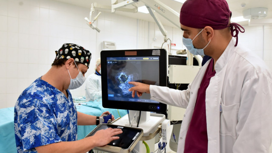 «Исследование проводится путем введения в кровеносный сосуд ультразвукового датчика диаметром всего 1,5 мм. Метод позволяет точно рассчитать диаметр просвета сосуда, толщину его стенок, определить степень сужения и оценить выявленные патологии, например, морфологию атеросклеротической бляшки, наличие и выраженность кальциноза», - пояснил врач.